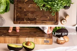 VDN Professionele Snijplank Acacia Hout Met Sapgeul En Handvatten – Hakblok 26x38x3.5 Cm