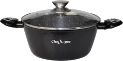 Cheffinger Pannenset – 10 Delig – Marmeren Coating – Inductie – Met Glazen Deksels – Zwart
