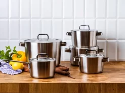 Alle pannen hebben een ingebouwde sandwichbodem, welke zorgt voor een snelle opwarming van de pan en een goede warmteverspreiding. De pannen zijn zo ontworpen dat je ze gemakkelijk kunt opstapelen.