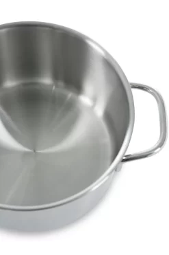 De body en bodem van de pan lopen vloeiend en afgerond in elkaar over. Omroeren van de inhoud en reiniging is hierdoor erg gemakkelijk. Het hoogglans gepolijst roestvrij edelstaal staat prachtig in elke keuken.