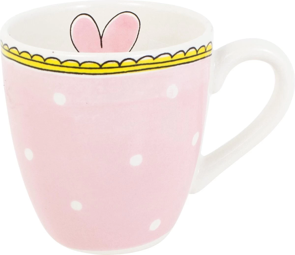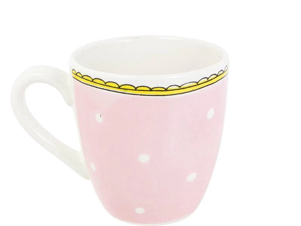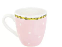 Deze lichtroze minimok met witte stipjes en een gele bovenrand behoort tot de collectie Even Bijkletsen van Blond Amsterdam. In de minimok staat een illustratie van een roze hart afgebeeld. De minimok is leuk te combineren met het andere servies uit de collectie Even Bijkletsen.