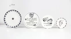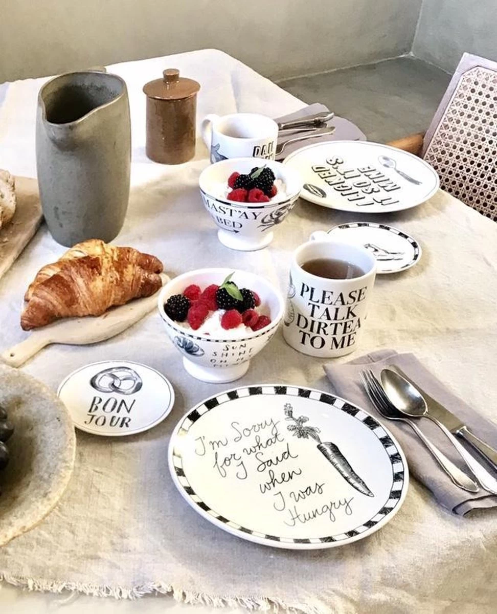 De zwart-witte tegenhanger van het bekende Blondservies is er. BLOND X NOIR. Herkenbaar handcrafted, met een ingetogener uitstraling. Tót je de tekst leest op het bord: I licked it so it’s mine. Nu dus óók Blond Amsterdam voor wie minder van het bonte en blozende is.