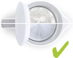 - Bestaan uit fijne zeef om zand en vuil uit leidingen tegen te houden en filteren kraanwater op basis van mix van krachtige Ion Exchange parels (houden kalk & metaal tegen)