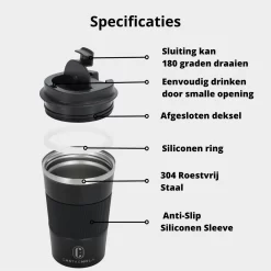 Castagnola Design RVS Koffiebeker To Go – Zwart – 380ml – Thermosbeker – Theebeker