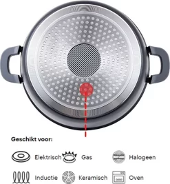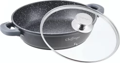 De lekkerste gerechten bereid je met deze Cheffinger kookpan. De pan is gemaakt van gegoten aluminium en is voorzien van een 3-laags marmeren coating en afneembare silicone handvaten. De pan is geschikt voor alle warmtebronnen. De pan in de oven? Dat kan, tot een temperatuur van 220 graden. De deksel is gemaakt van gehard glas en heeft een roestvrije stalen knop.
