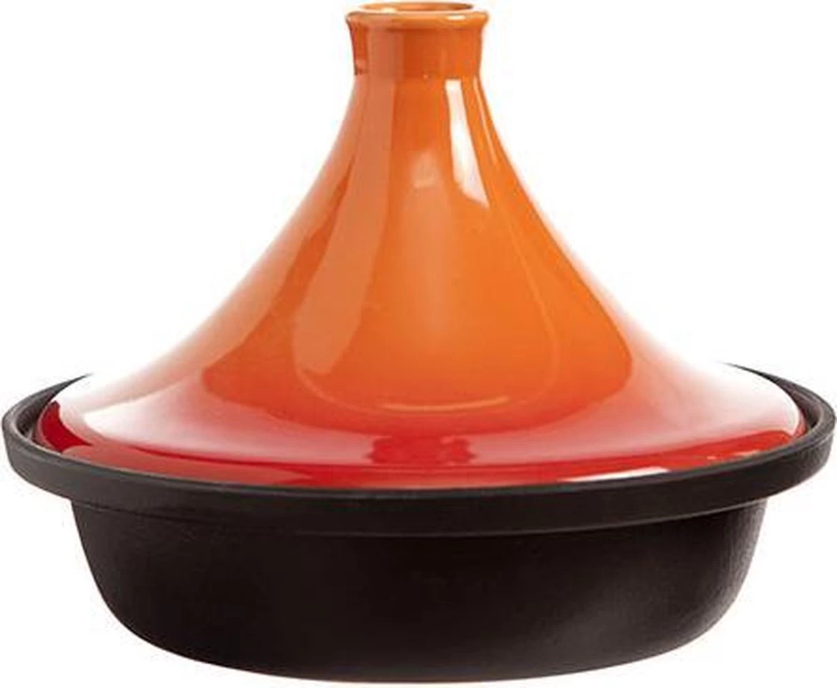 Typisch aan de tajine is het kegelvormige deksel. Het zorgt ervoor dat u maar weinig water moet gebruiken tijdens de bereiding. De waterdamp die in de tajine ontstaat, verzamelt zich op de binnenwand van het deksel. Zo blijft het vocht behouden en geeft het u lekker mals vlees of vis en heerlijk sappige groenten als resultaat. Het gietijzer garandeert een geleidelijke en gelijkmatige opwarming, waardoor groenten-, vlees- en visgerechten alsook gevogelte langzaam gaar worden. De tajine is geschikt voor gebruik in de oven, microgolfoven en op gas, inductie, keramische en elektrische kookplaten. Onderhoud: steek de tajine niet in de vaatwasser. Meteen goed drogen.