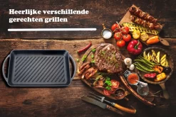 - Blijft lang op temperatuur: Het duurt even voordat een gietijzeren warm is, maar wanneer de grillplaat heet is blijft deze dat dan ook lang.
