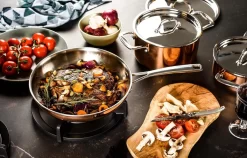 DUCQ pannen zijn niet alleen fraai in design maar ook van uitstekende kwaliteit. De pannen zijn opgebouwd uit 3 lagen: 0,5 mm koper aan de buitenzijde, roestvrijstaal (RVS) aan de binnenzijde en een aluminium tussenlaag.