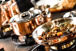De koperen pannen zijn speciaal ontwikkeld voor inductie. Maar uiteraard kun je ze ook op gas en alle andere warmtebronnen gebruiken.