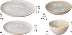 · Product: 6 dinerborden, 6 ontbijtborden, 6 diepe pastaborden, 6 kommen
