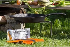 Deze skillet is een degelijke pan en een mooie aanwinst voor iedere buitenkok.