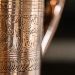 Deze unieke koperen drinkflessen, kannen en bekers worden al eeuwen met de hand gemaakt in India. Juist omdat het handwerk is, is elk artikel uniek en kan dus iets afwijken van de foto.