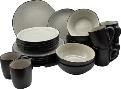 Deze set bestaat uit 6 dinerborden, 6 ontbijtborden, 6 koffiemokken en 6 schaaltjes. Dit servies is geschikt voor de lunch en het diner en slaat ook bij feestelijke gelegenheden een goed figuur.