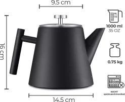 Silberthal – Theepot Met Filter – 1 L – RVS Dubbelwandig – Zwart – Cadeau