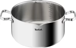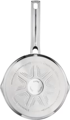 Deze 3-delige roestvrijstalen Duetto kookset van Tefal combineert een eigentijds design met optimaal gebruiksgemak. Het roestvrij staal is van een duurzame Premium kwaliteit. Niet voor niets geeft Tefal 10 jaar garantie op het roestvrij staal van deze kookset. De duurzame dikke sandwichbodem (rvs-aluminium-rvs) is zeer vormvast en zorgt ervoor dat de warmte snel en gelijkmatig wordt verspreid.