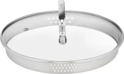 Deksels met 2 soorten gaten – klein en groot, voor het zeven van ingrediënten van verschillende groottes. De geprofileerde randen zorgen voor gemakkelijk gieten, waardoor koken nog gemakkelijker wordt.