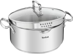 De Tefal Duetto+ Pannenset heeft het multi-task assortiment van roestvrijstalen kookpotten die je tijd besparen in de keuken, zodat je meer tijd kunt besteden aan de mensen en dingen waar je van houdt! Deze 10-delige 5-pannenset is gemaakt van hoogwaardig roestvrij staal en heeft een garantie van 10 jaar, met volledige robuustheid en duurzaamheid. Deze roestvrijstalen kookpannen hebben een gepolijste glanzende afwerking en bovendien handige schenkranden.