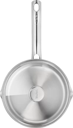 Slim en gebruiksvriendelijk Tefal Duetto steelpan – Ø 16 cm is de multifunctionele serie van roestvrijstalen pannen waarmee je tijd bespaart in de keuken. Zo kun je tijd besteden aan de mensen en dingen waar jij van houdt! Deze steelpan is gemaakt van roestvrij staal van topkwaliteit wat zorgt voor robuustheid en duurzaamheid. Daarom komt deze pan met een garantie van tien jaar. De steelpan heeft handige schenktuiten en een praktische afgietdeksel. De glazen deksel is ontworpen met grote gaten aan de ene kant voor het afgieten van pasta en kleine gaatjes aan de andere kant voor het afgieten van rijst. Het resultaat is probleemloos koken en sneller opruimen! Aan de binnenkant zorgt een makkelijk leesbare maatverdeling voor nauwkeurig koken en heerlijke resultaten, terwijl aan de buitenkant ultraresistente geklonken handgrepen zorgen voor meer veiligheid. Met een elegant ontwerp dat in elke keuken thuishoort, maakt Duetto het je gemakkelijk om het beste resultaat te behalen. De Duetto steelpan is geschikt voor alle warmtebronnen, inclusief inductie. Producteigenschappen: Gemaakt van duurzaam en kwalitiatief 18/10 roestvrij staal en daarom komt de pan met 10 jaar garantie Stevig geklonken handgrepen voor extra comfort tijdens het koken Handige afgietdeksel, voor het afgieten zonder te knoeien Handige afgietdeksel, voor het afgieten zonder te knoeien Geschikt voor alle warmtebronnen, inclusief inductie Producten zijn recyclebaar