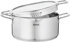 De strakke lijnen, het hoogwaardige geborstelde roestvrij staal en de platte deksel van deze Tefal Nordica Pannenset – 3 delig zorgen ervoor dat je heerlijke gerechten kunt maken. Zonder poespas, maar met het grootste gemak. Dankzij het innovatieve design heeft de Nordica twee grepen aan de zijkant voor het veilig en makkelijk afgieten van kookvocht.