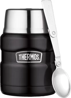 Een praktische en hoogwaardige voedseldrager. Compact mee te nemen en beschikt over een uitneembare lepel in het deksel. De hoge kwaliteit vacuüm isolatie technologie van Thermax® zorgt voor maximaal behoud van koude of warme temperaturen en houdt de inhoud tot 3x langer warm dan vergelijkbare isoleerflessen! Speciaal lichtgewicht roestvrij staal, verkoperd voor optimale isolatie en tot 20% lichter. Door speciale constructie praktisch onbreekbaar en deukbestendig! Hierdoor neemt de isolatie ook na intensief gebruik nauwelijks af. Bij andere isoleerflessen zorgt een deuk voor directe afname van de isolatie. Voorzien van een dop die tevens dient als drinkbeker. Inclusief 5 jaar garantie!