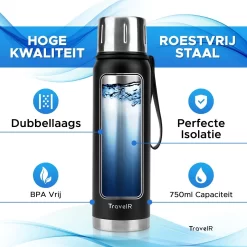 Dankzij de thermosfles van TravelR kun je altijd genieten van een verwarmend drankje in de koude winter of een verfrissende dorstlesser tijdens de warme zomerdagen.