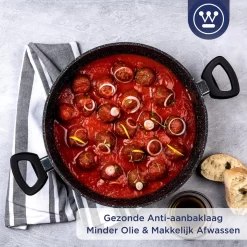 De Westinghouse pannen zijn heel eenvoudig te reinigen en gemakkelijk afwasbaar. Door de duurzame anti-aanbaklaag blijven er na het koken geen aanbakresten achter in de pan en volstaat het de pan schoon te maken met een vochtige doek of licht sopje. Bovendien zijn de Westinghouse pannen vaatwasser-bestendig.
