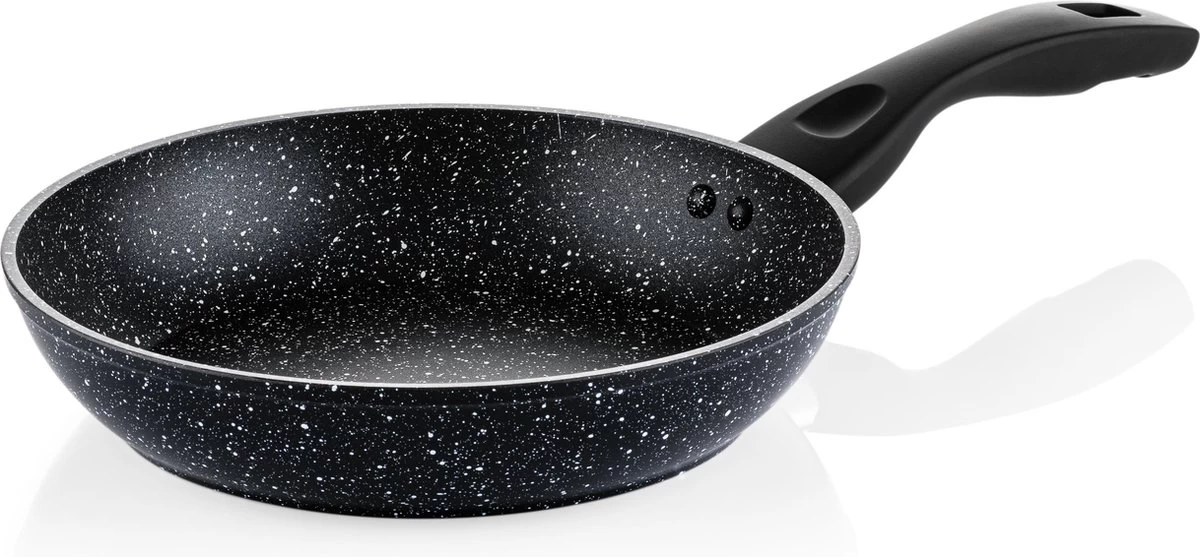 Met de Westinghouse Zwart Marmer Koekenpan (24cm) haal je een mooie basis pan in huis. De uiterst sterke anti-aanbaklaag maakt dat je stukje vis of gebakken groentjes niet vastplakken, zelfs met weinig vetstof. De pan is gemaakt uit aluminium wat zorgt voor een snelle opwarming en gelijkmatige warmteverdeling. Zo bak je de aardappeltjes altijd mooi egaal bruin.